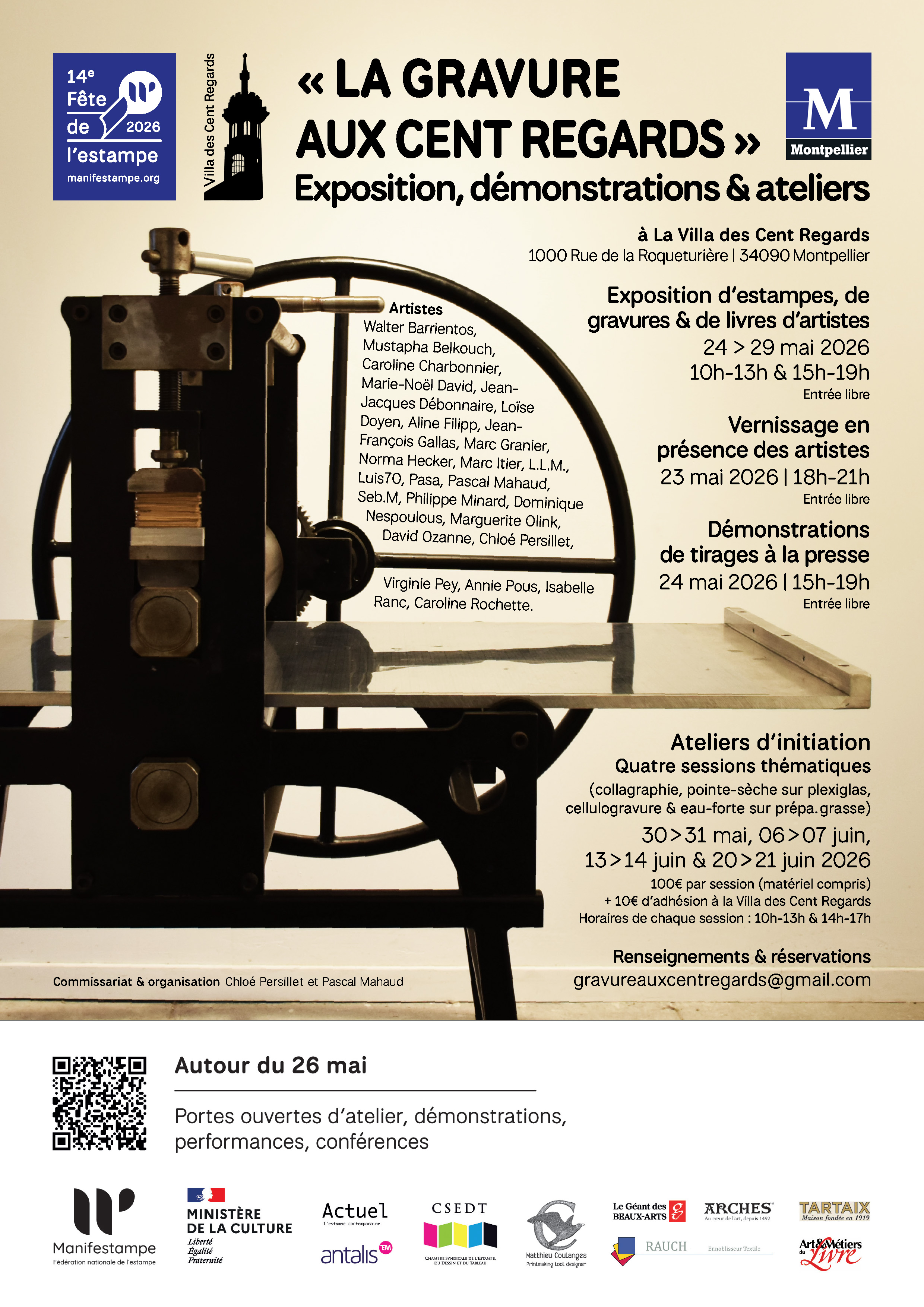 Visite d’atelier au 42 rue Méditerranée organisée par le collectif d’artistes Les BriscARTS samedi et dimanche 30-31 mai 2026 de 11h à 19h + une exposition collective à l’espace Saint-Ravy à Montpellier sur le thème Fenêtres vendredi à dimanche 29 -31 Mai de 11h à 19h – Vernissage vendredi à 18h30