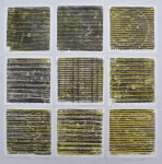 Impressions blocks print sur 9 carrés papier craft, collés sur papier craft – cadre chêne – 400 €