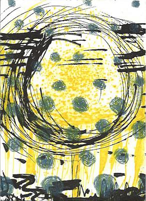 Collagravure en 3 plaques de carton pelliculé : griffées, découpées et encollées avec divers médiums plus ou moins poreux à l’encre d’impression. – 600 €