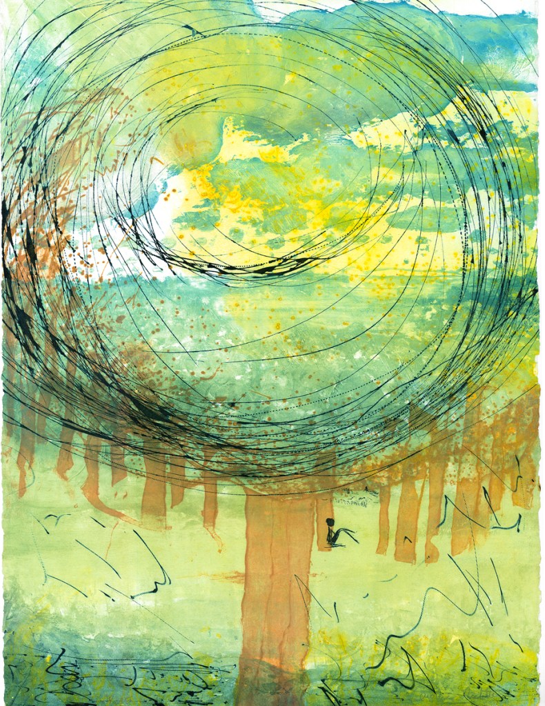 J’ai élaboré cette estampe lors d’un voyage en Mai, en Angleterre, à l’Est de Londres.
