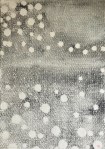 Sur la matrice, percer des trous, trouver des rythmes, chercher là aussi un vaste paysage, écrire des messages en braille, et laisser les alvéoles du carton apparaitre. Sur le papier les trous deviendront blancs et gaufrés..